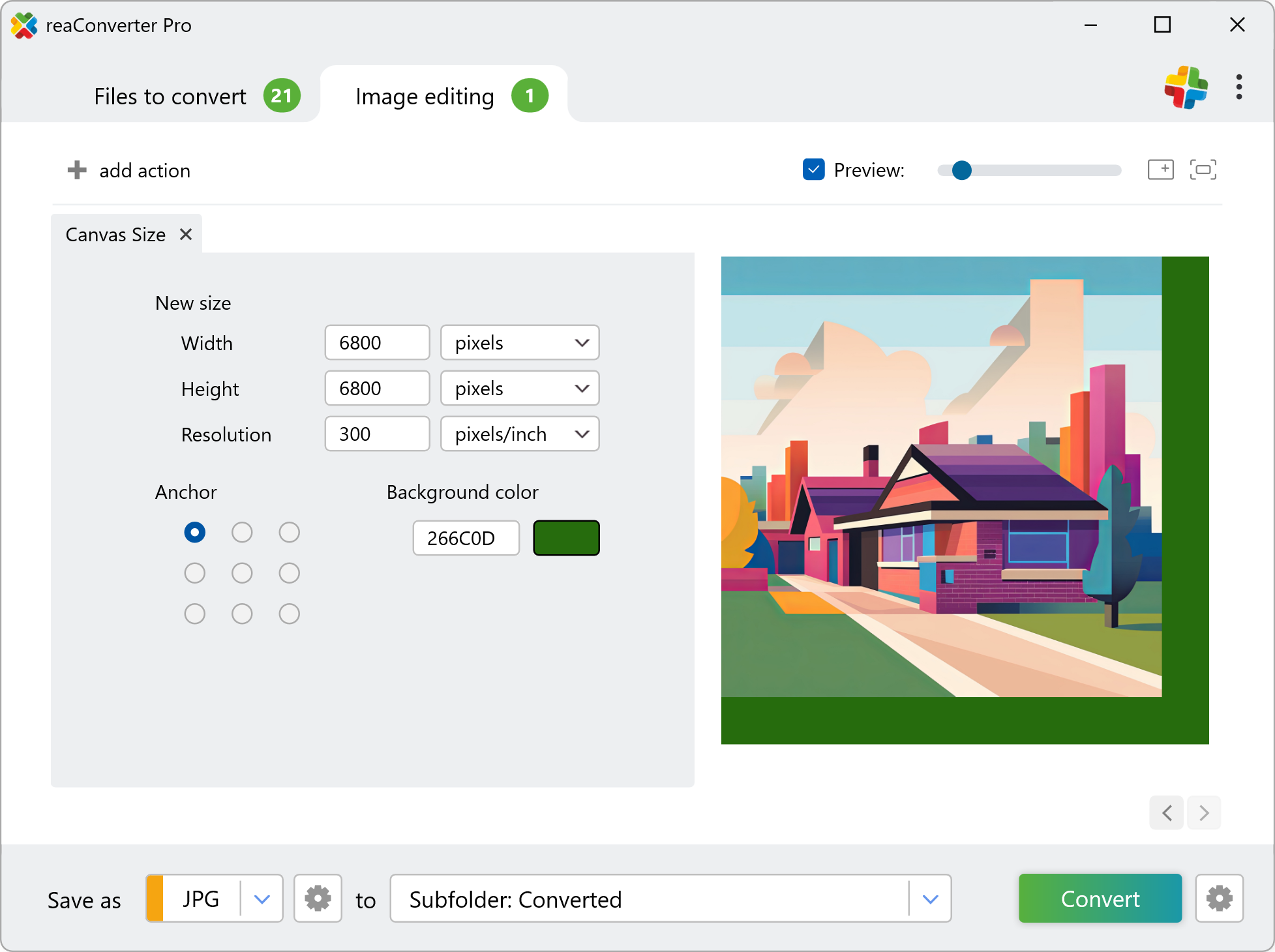 The fast and easy way to change canvas size on your PC is to use reaConverter. The software runs completely offline, keeping your files safe and private.