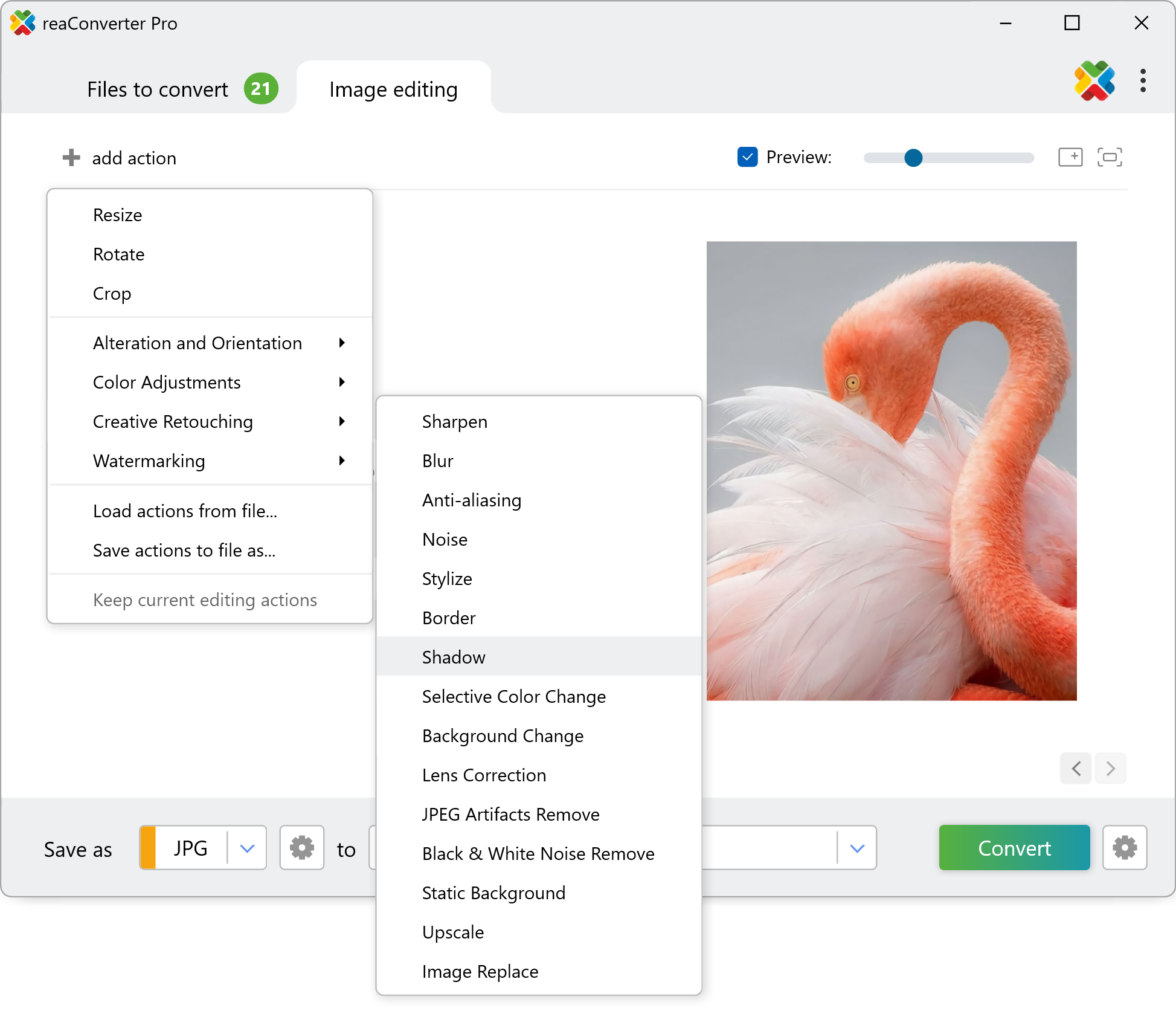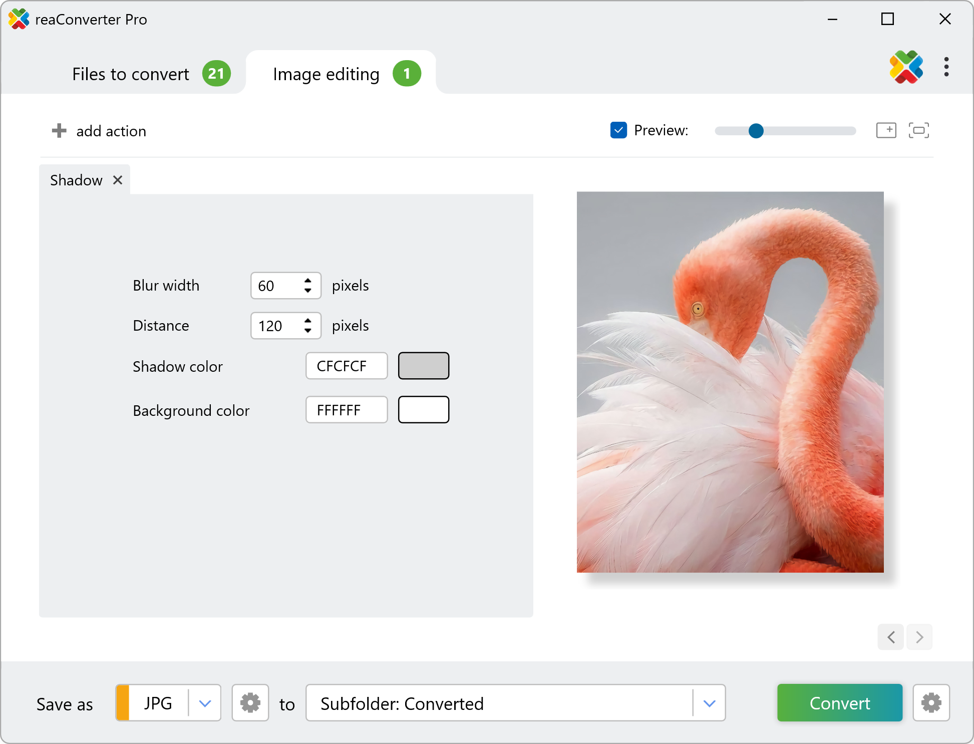 The fast and easy way to shadow images on your PC is to use reaConverter. The software operates completely offline, keeping your files safe and private.