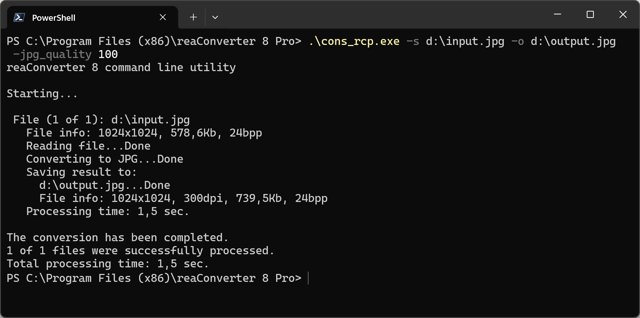 cons_rcp.exe -s "C:\Path_to\input_file.png" -o "C:\Path_to\output_file.jpg" -jpg_quality 100