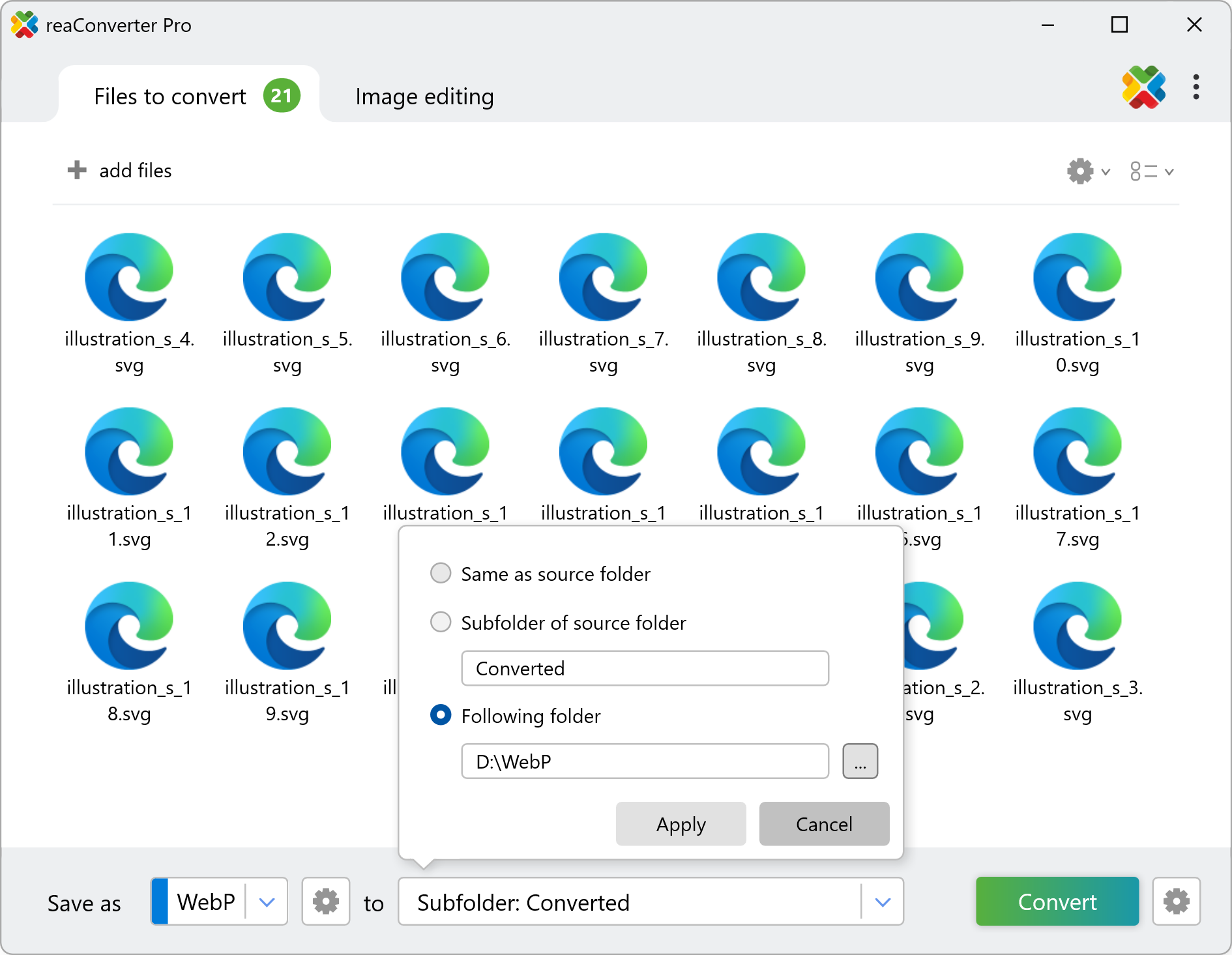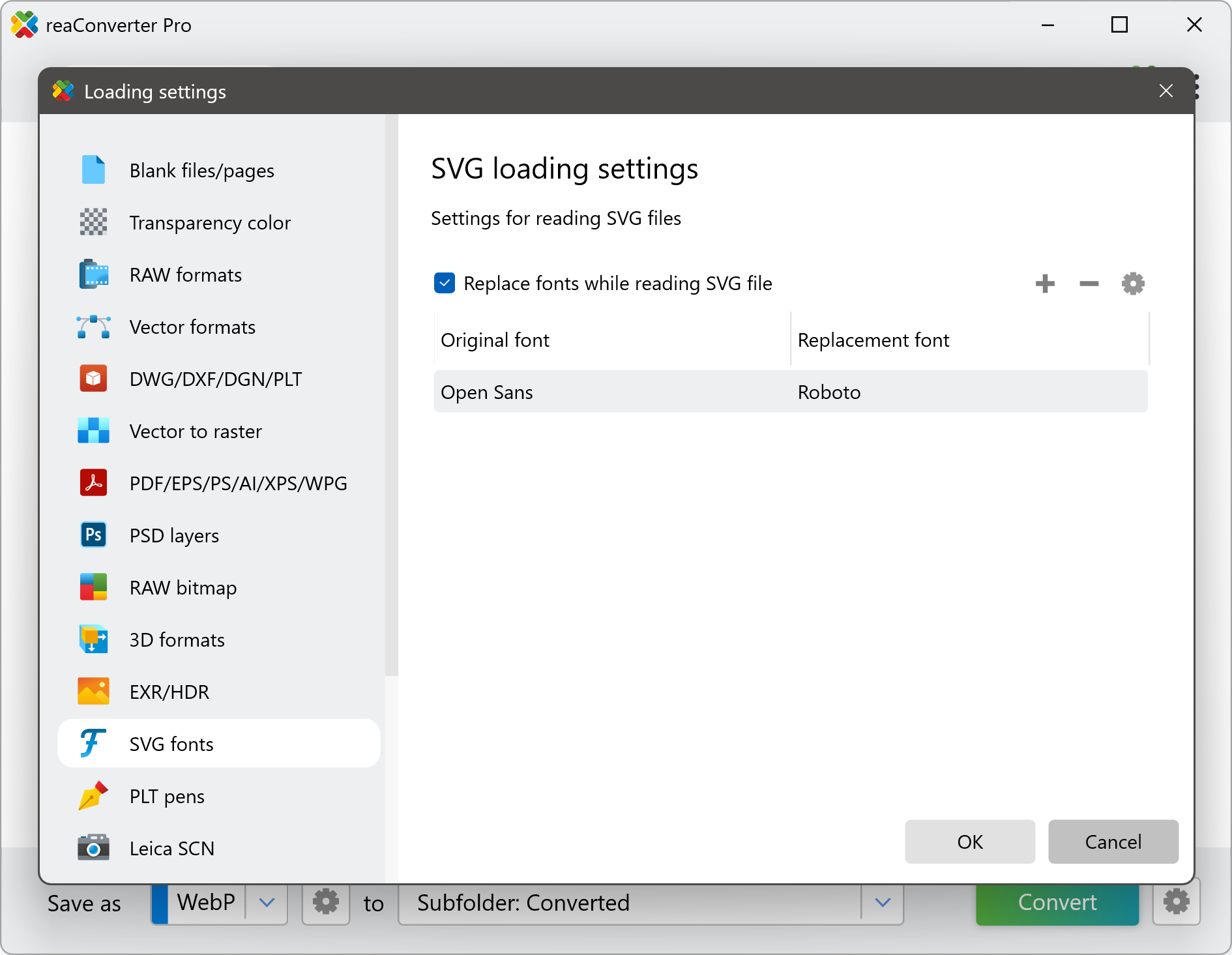 Apply your custom font replacements to hundreds of SVG files at once — quick, easy, and automated with reaConverter.