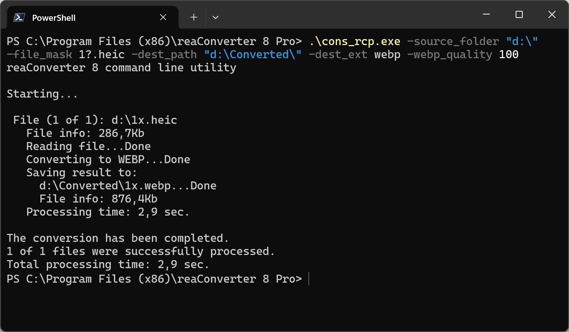 cons_rcp.exe -source_folder "C:\Path_to\input_folder\" -file_mask 1?.heic -dest_path "C:\Path_to\output_folder\" -dest_ext jpg -jpg_quality 100