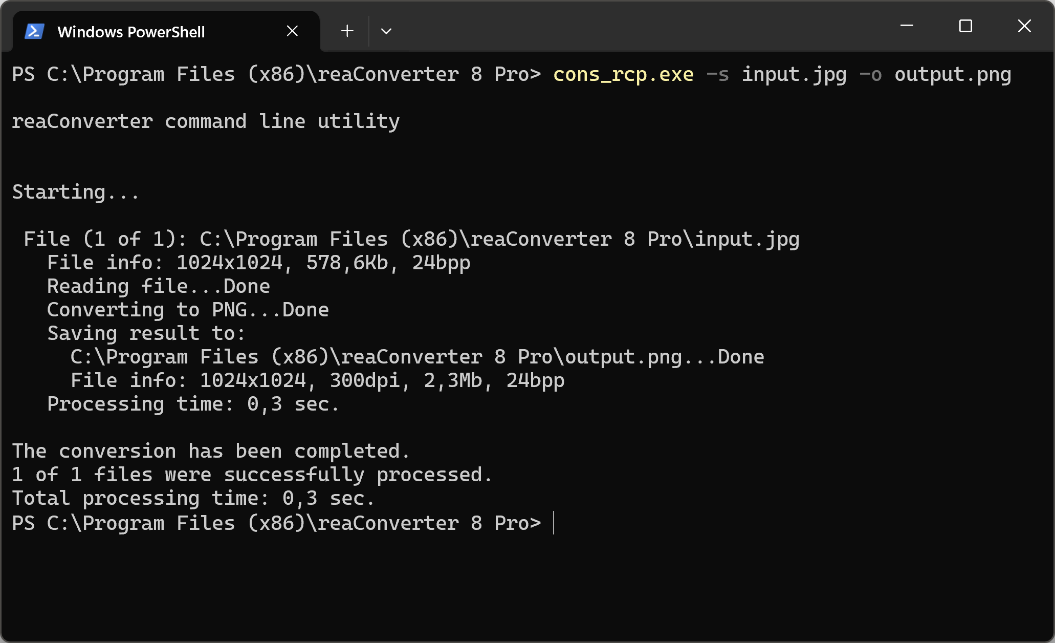 cons_rcp.exe -s "C:\input.jpg" -o "C:\output.png"