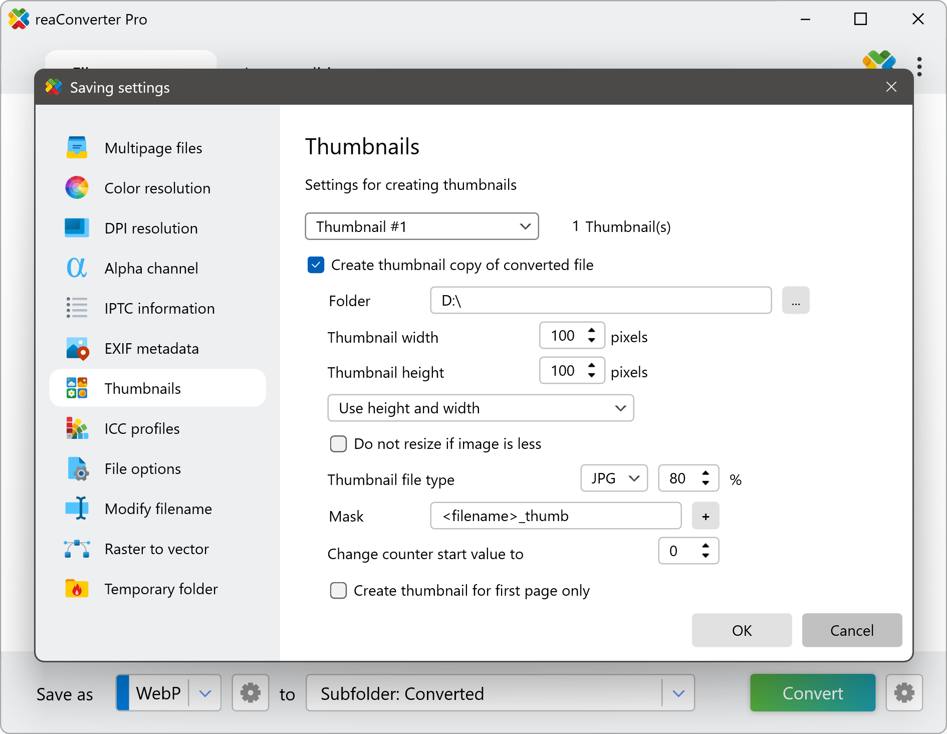 reaConverter offers a customizable and easy-to-use feature for creating thumbnail versions of your images.