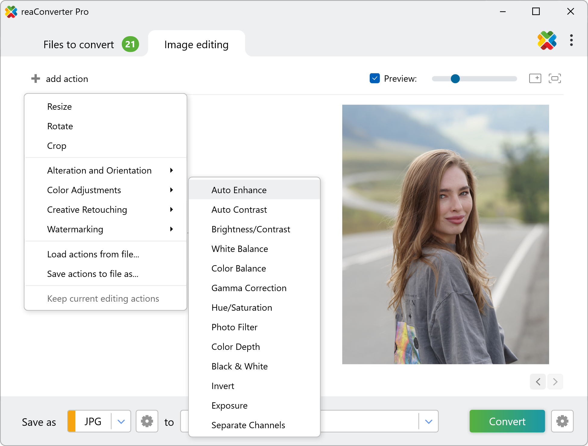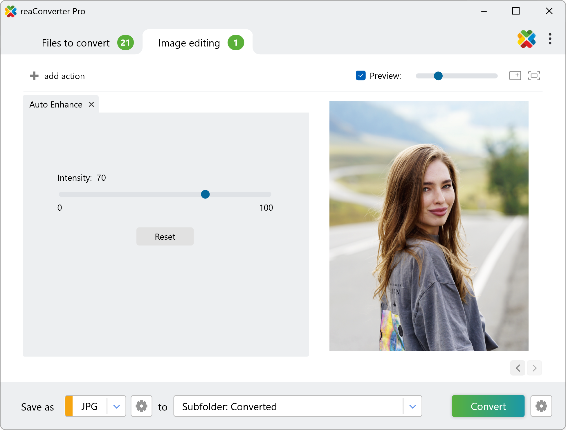 Enhance your photos with ease and speed using reaConverter, a powerful software that runs offline, ensuring your image files remain private and secure at all times.