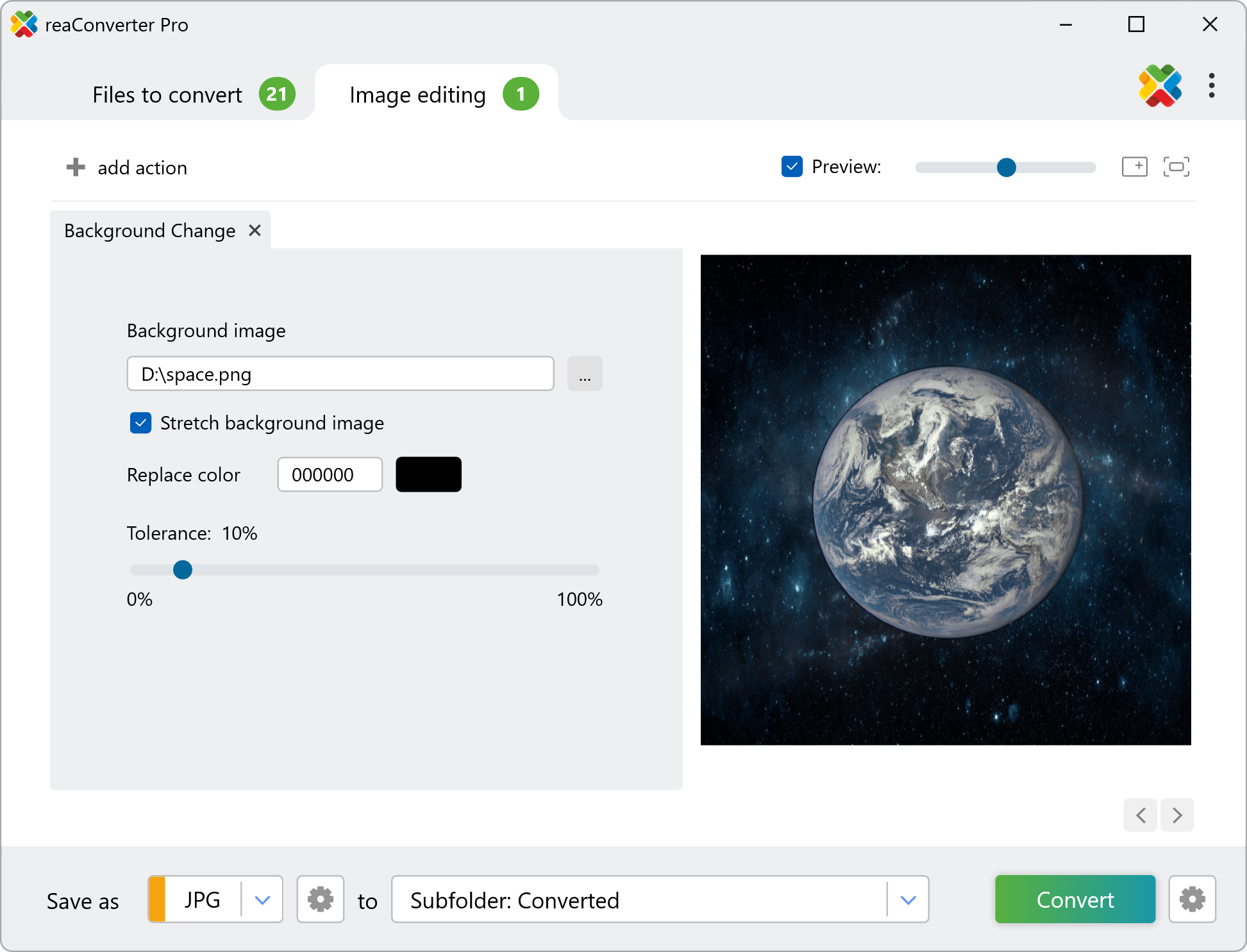 A quick and easy way to change the background of pictures on your computer is to use reaConverter. The software works completely offline, keeping your files safe and private.