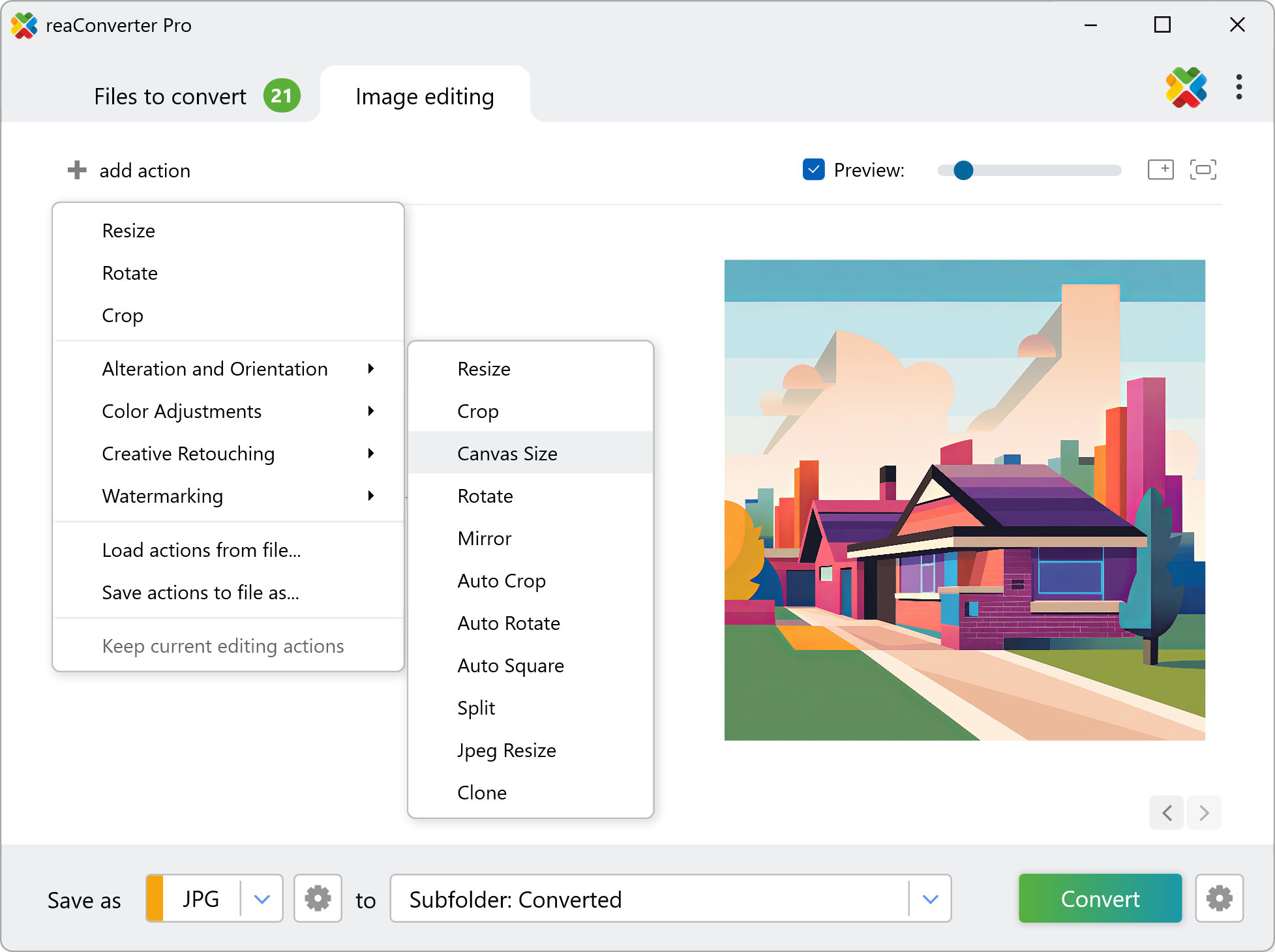 The fast and easy way to change canvas size on your PC is to use reaConverter. The software runs completely offline, keeping your files safe and private.