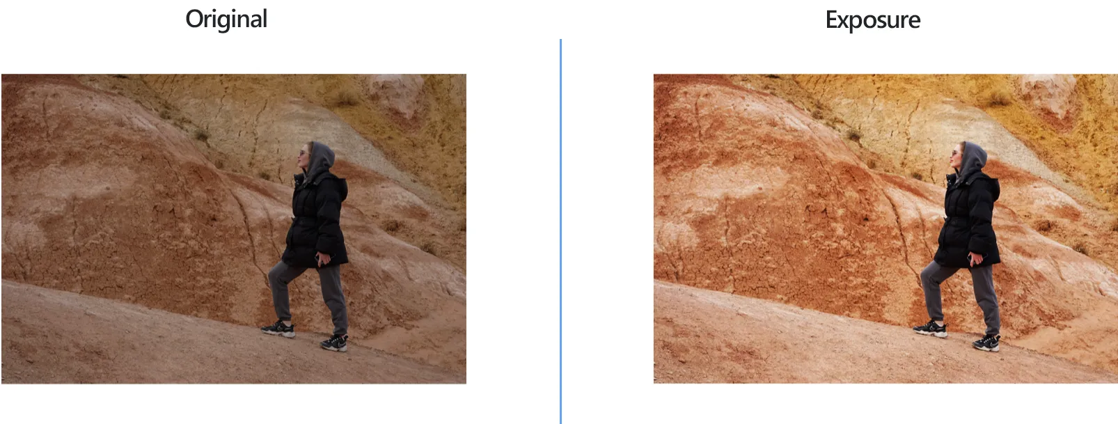 In the Image editing tab, click Add action and then Color Adjustments → Exposure.