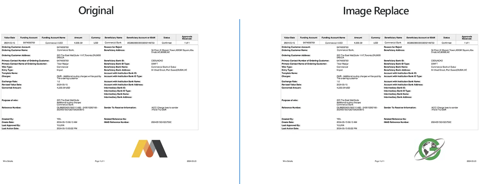 Image replacement example: