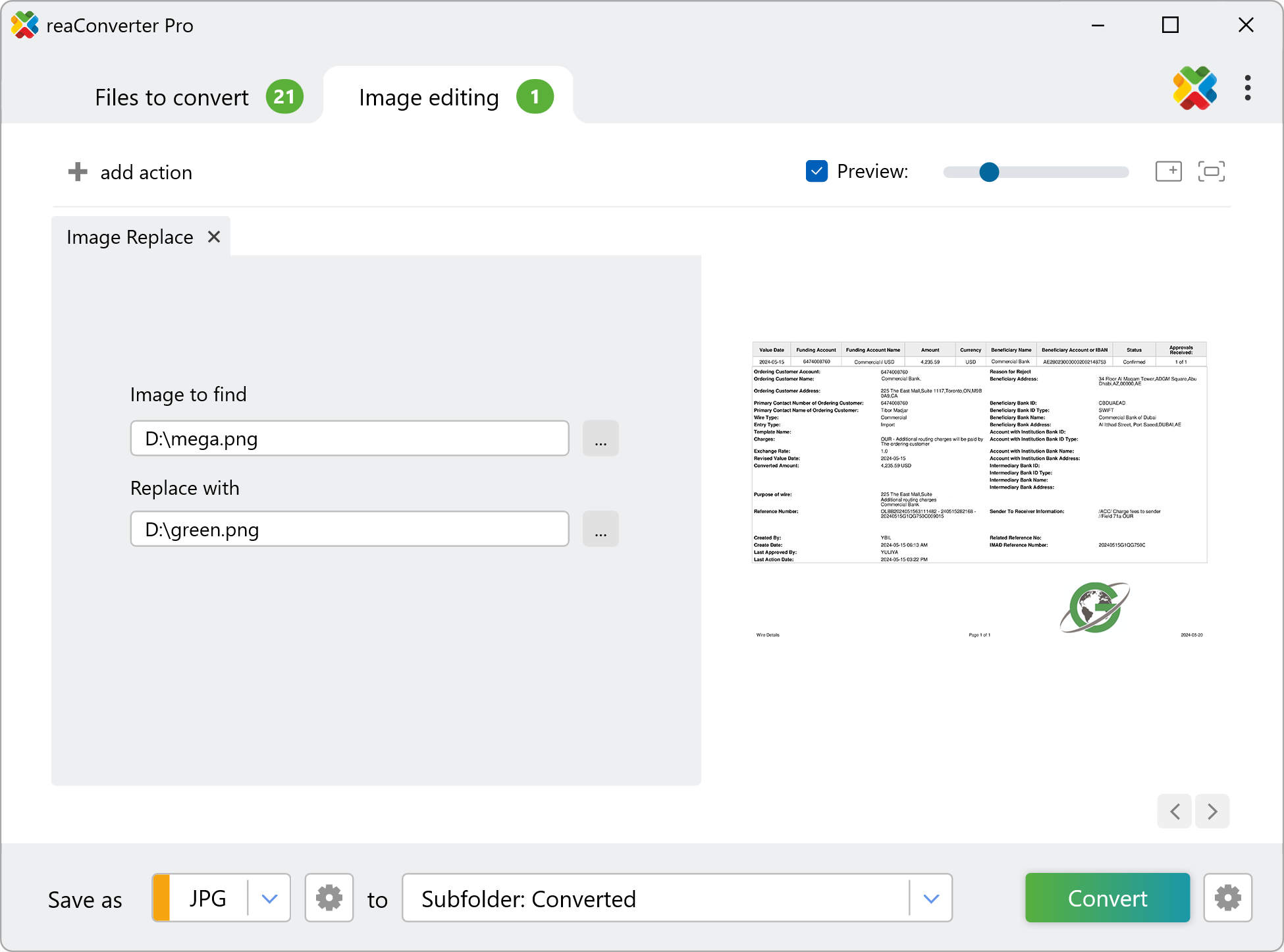 2. Add Image Replace Action