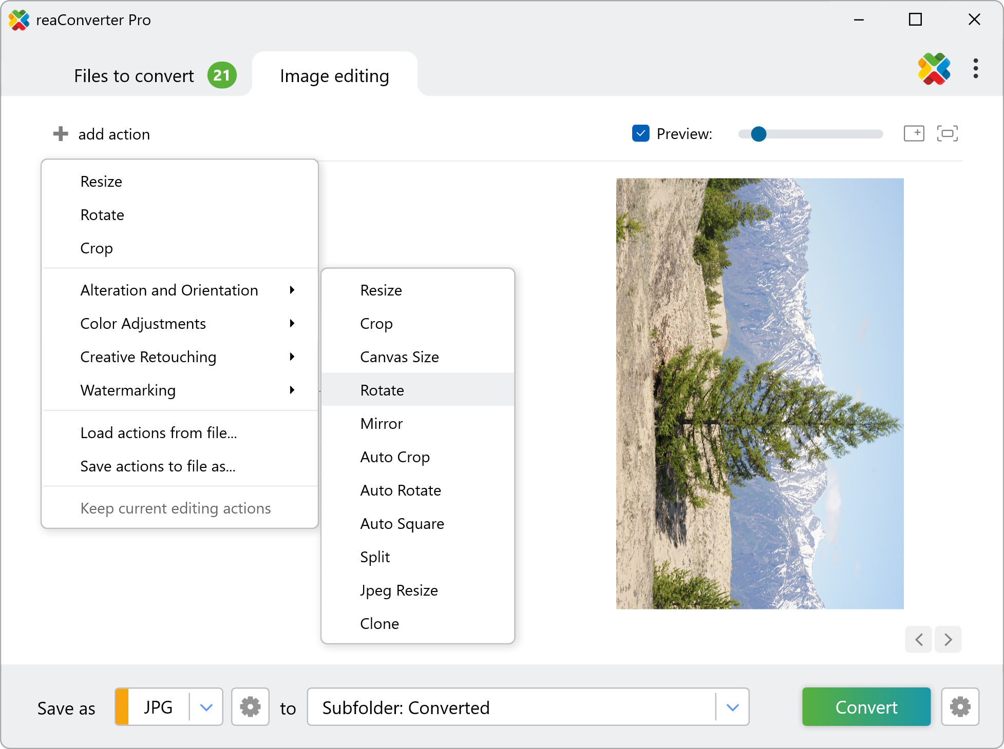 The fast and easy way to rotate images on your PC is to use reaConverter. The software runs completely offline, keeping your files safe and private.